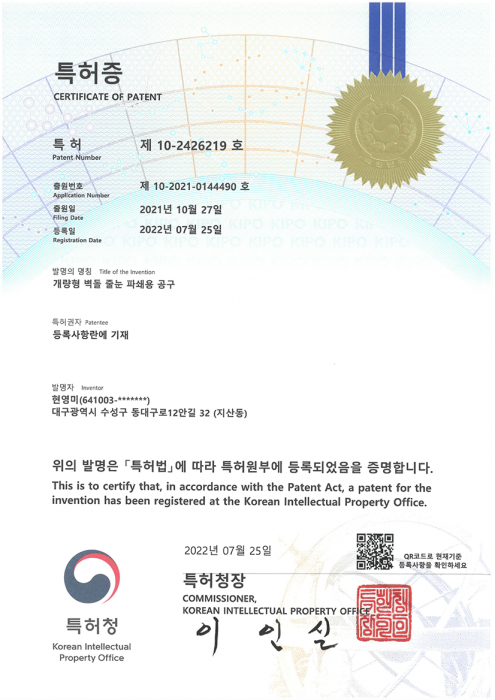 특허등록증(10-2426219호)-1